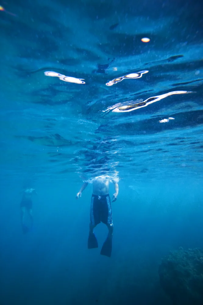 How could I say no? We drove down to Hilo, with the fullest intention of getting me out of the water by 6 PM, in time to catch my 7:30 flight. We sailed through Hilo harbor to a waterfall that ran over an abandoned railroad track, where we took our turns standing under the waterfall and getting a natural massage. As we headed back to Hilo, the light started to fade, and I knew there was a serious chance I might miss my flight. But the sky was beautiful and the reflection of the red sails on the water was doing all sorts of things in my mind, so I just went with it. I held my camera low to the water, cranked the shutter speed down to about a half or a quarter of a second, and ended up with one of the best shots of the trip, which ran full-page in the magazine.